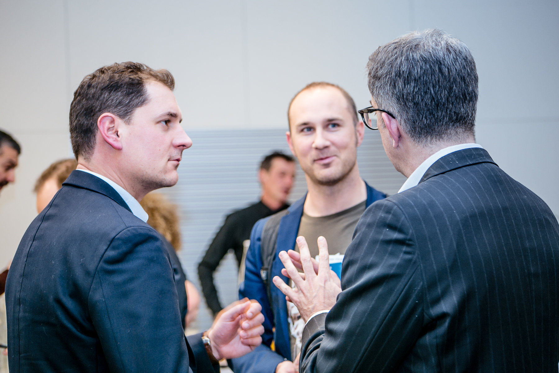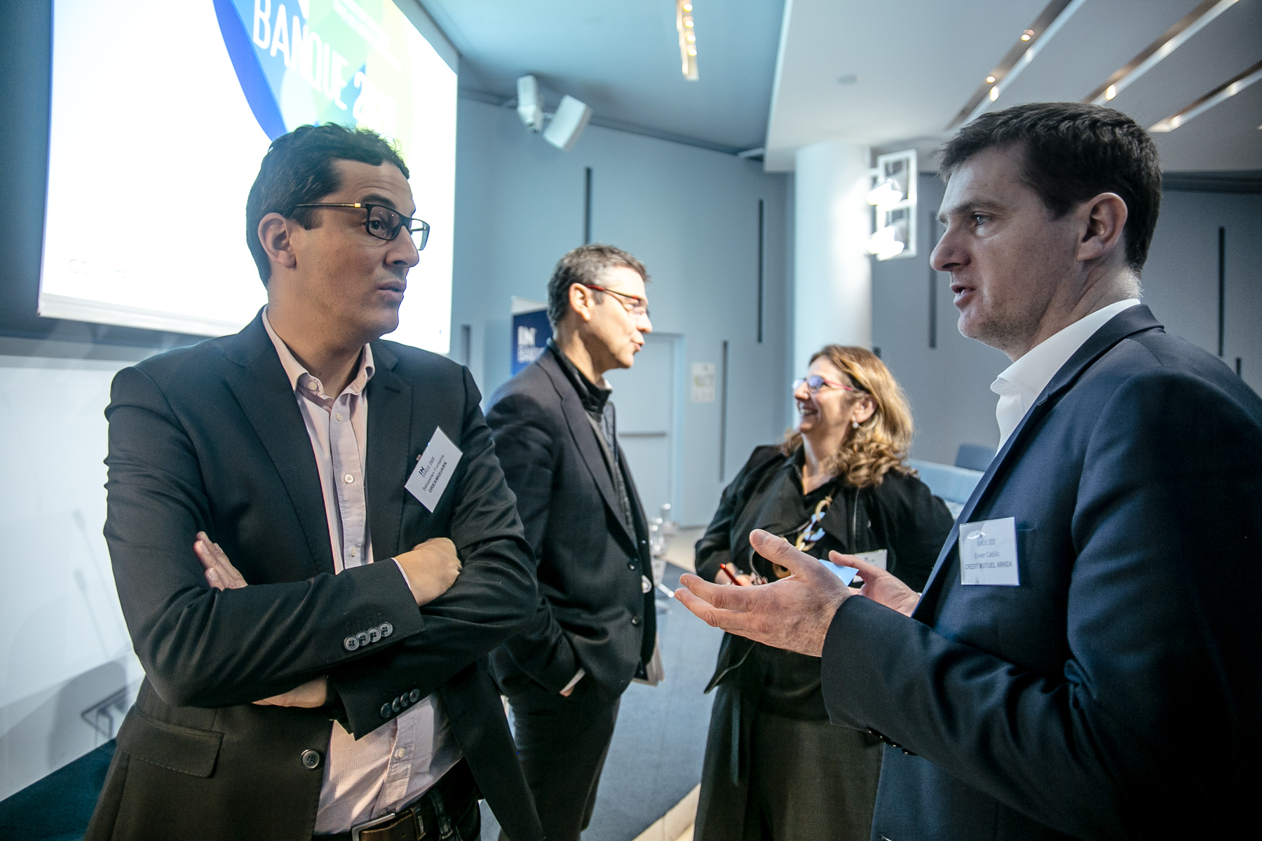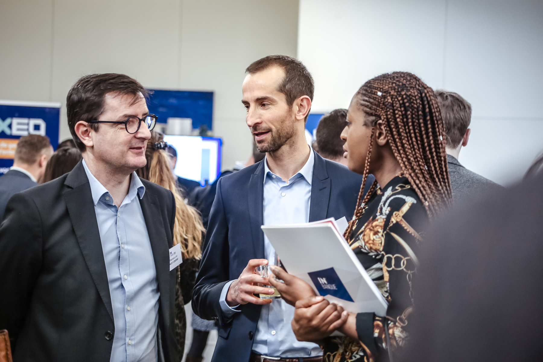 - Benjamin Lopez (Crédit Agricole Nord de France), Luc Truntzler (inbenta) et Jérôme Morlon (Iperiago) – IN BANQUE 2020 – Crédit photo : Guillermo Gomez