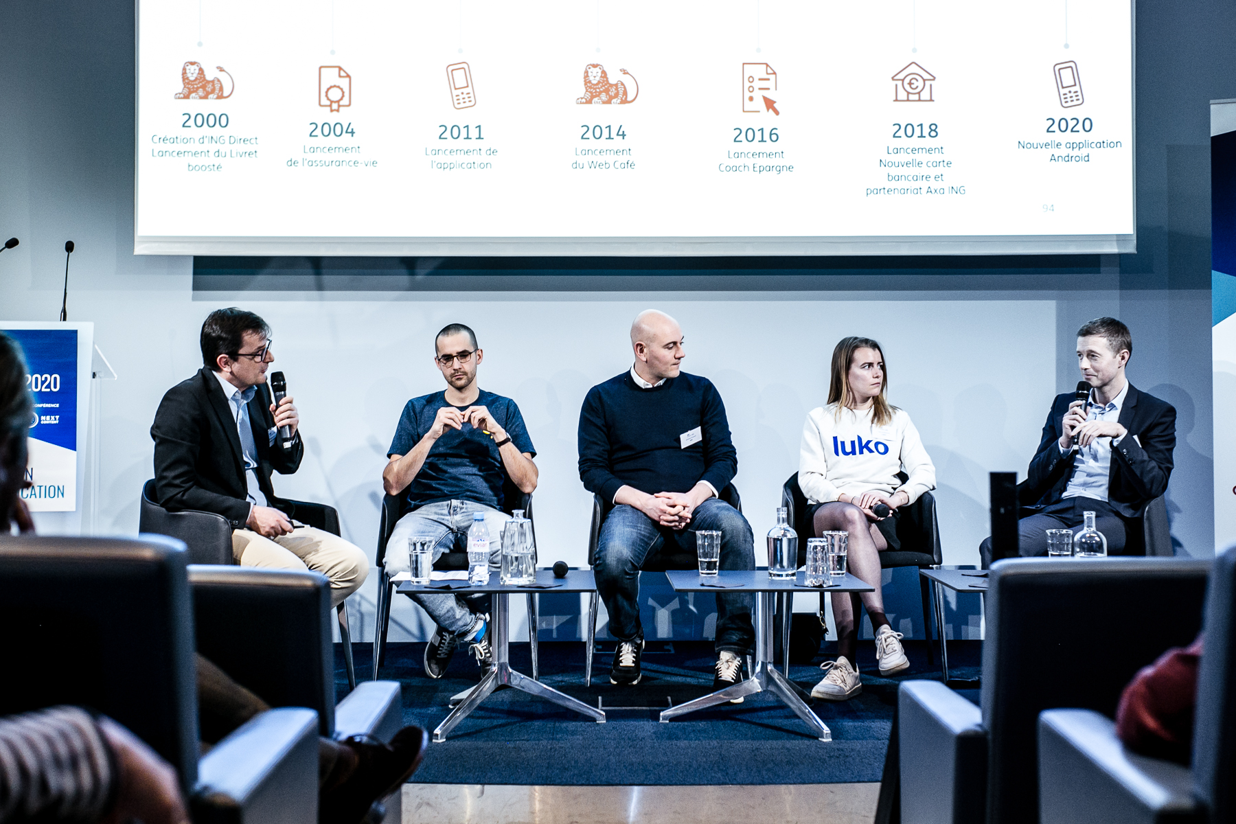 - Paul de Leusse (Orange Bank), Alice Holzman (Ma French Bank) et Christophe Husson (CGI Business Consulting) – IN BANQUE 2020 – Crédit photo : Guillermo Gomez